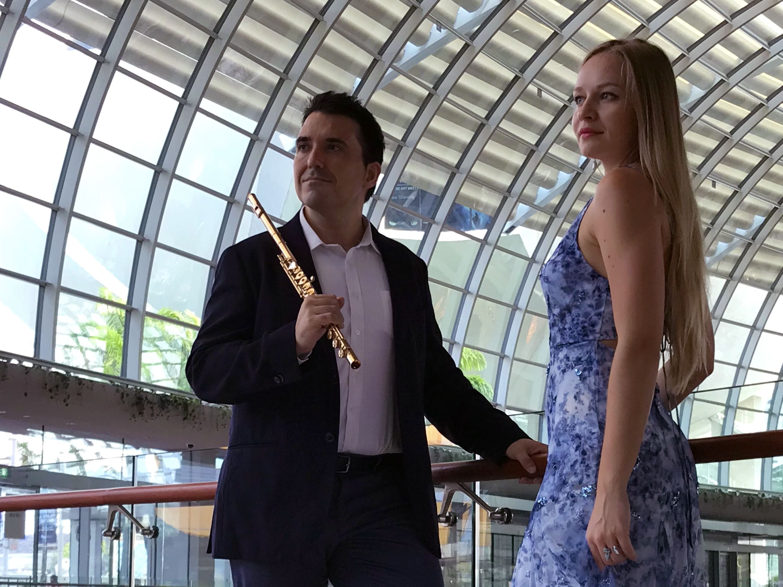 We are thrilled to announce an evening with the scintillating Singapore-based Flute and Piano duo of Roberto Álvarez (flute) and Kseniia Vokhmianina (piano)